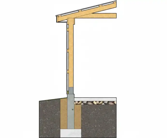 The most economical and common choice, this foundation uses treated posts set into the ground for a quick and simple build. It provides a strong, practical base, making it ideal for standard pole buildings.